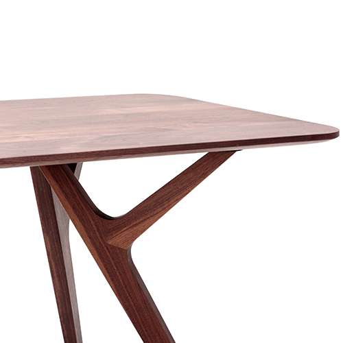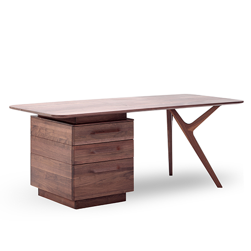 主材運用實木的紋理清晰自然,桌面邊緣銑型工藝使整張桌面輕薄,桌腿的鹿角設(shè)計別具特色。