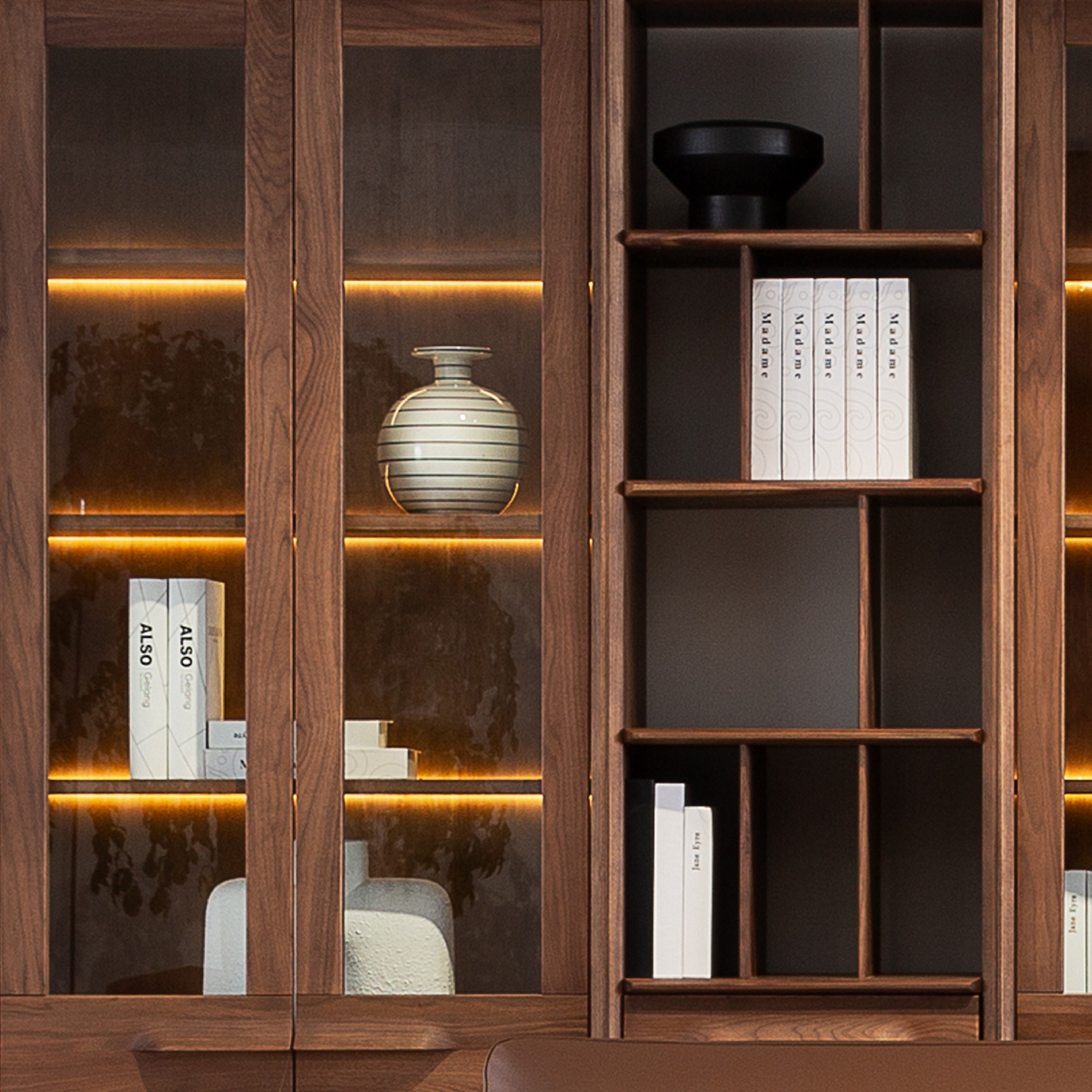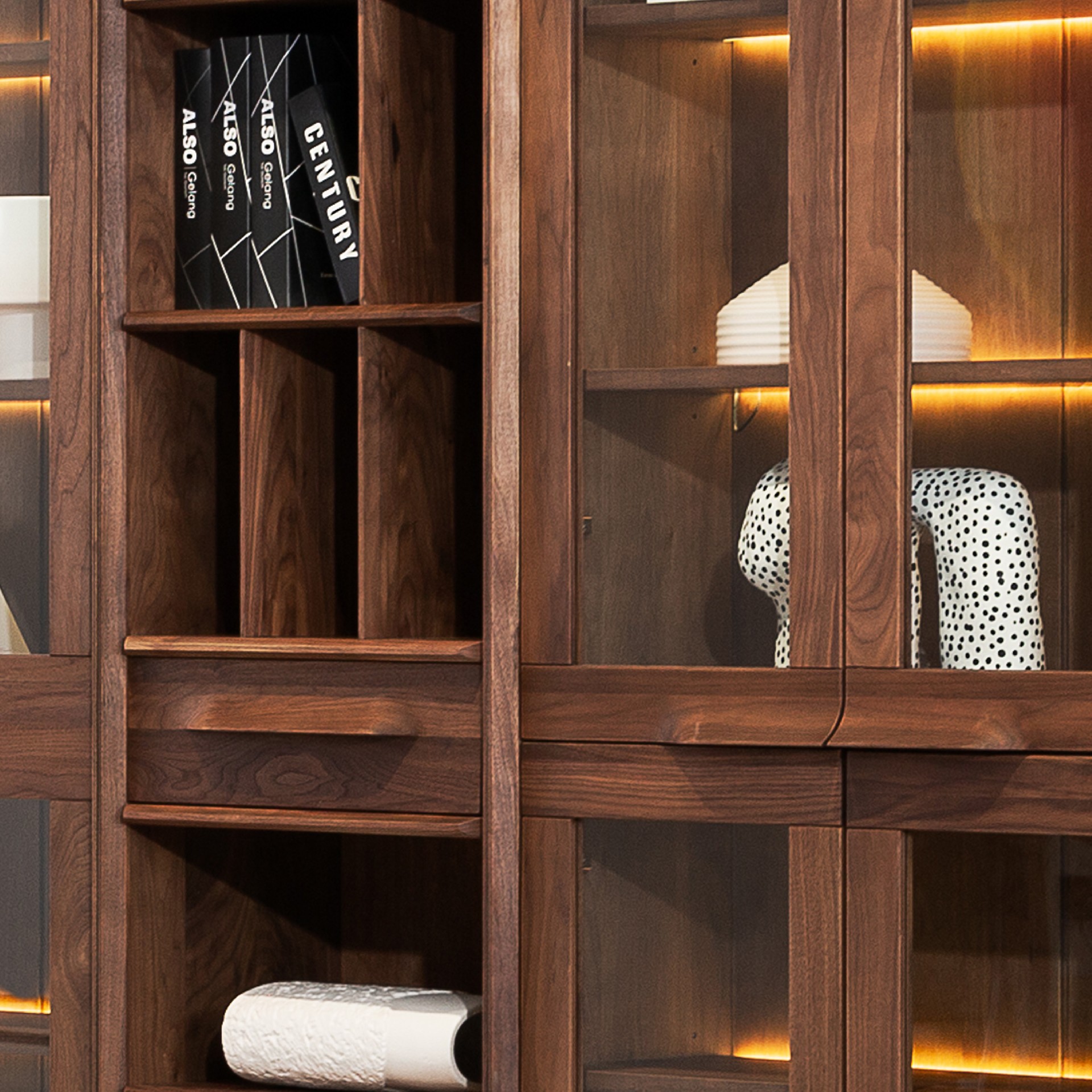 造型獨特、融合了中西方設(shè)計元素,柜體框架結(jié)構(gòu)很有特色,兼具書籍和藝術(shù)品擺放多種功能,紋理清晰自然、可實現(xiàn)模塊化隨意組合,實現(xiàn)產(chǎn)品定制化 。