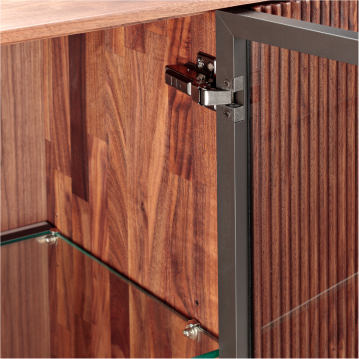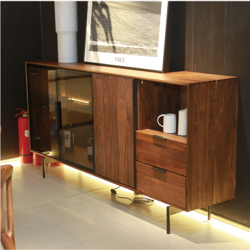 整體方正造型,左側(cè)通透的木格,配以大面積的玻璃門,內(nèi)搭玻璃隔板,以透明、流暢且充滿活力的方式規(guī)劃空間,裝飾柜內(nèi)燈光點綴,在視覺上,完美呈現(xiàn)極簡、明亮之美。沒有過多裝飾,通過纖細的金屬腿,增加視覺的靈動感。多種設計元素,多種儲物分層。視覺分區(qū)靈動,柜體不顯笨重。